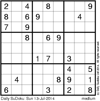 The Daily SuDoku: Sun 13-Jul-2014