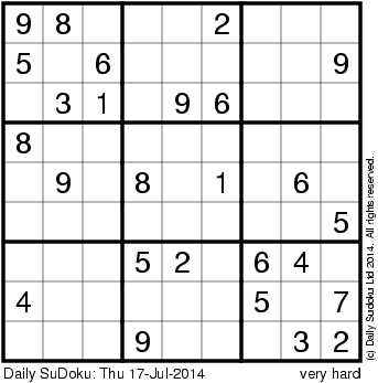 The Daily SuDoku: Thu 17-Jul-2014
