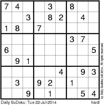 The Daily SuDoku: Tue 22-Jul-2014