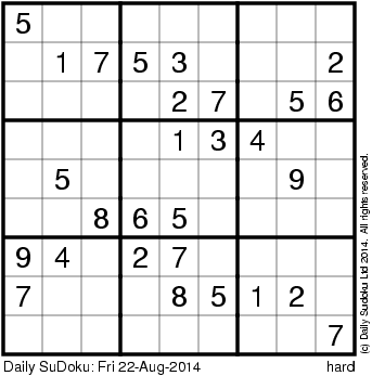 The Daily SuDoku: Fri 22-Aug-2014