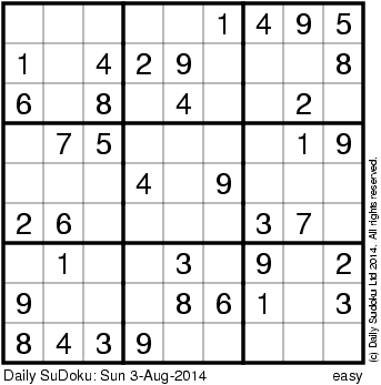 The Daily SuDoku: Sun 3-Aug-2014