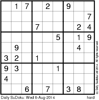 The Daily SuDoku: Wed 6-Aug-2014