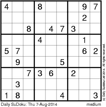 The Daily SuDoku: Thu 7-Aug-2014