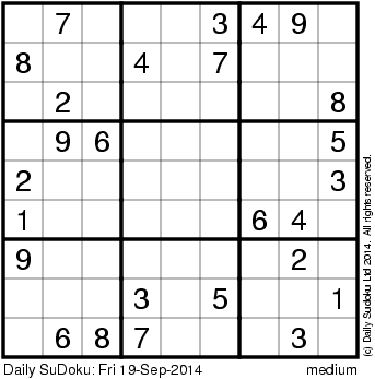 The Daily SuDoku: Fri 19-Sep-2014