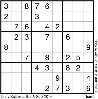 The Daily SuDoku: Sat 6-Sep-2014