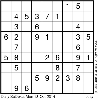 The Daily SuDoku: Mon 13-Oct-2014