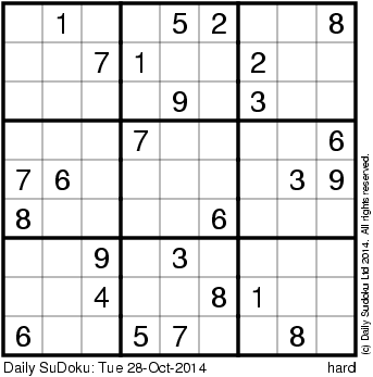 The Daily SuDoku: Tue 28-Oct-2014