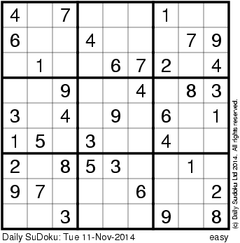 The Daily SuDoku: Tue 11-Nov-2014