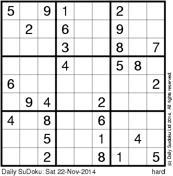 The Daily SuDoku: Sat 22-Nov-2014