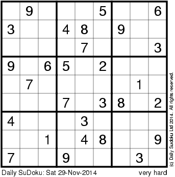 The Daily SuDoku: Sat 29-Nov-2014