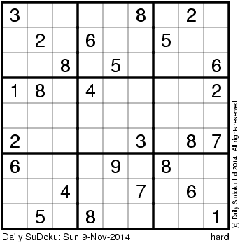 The Daily SuDoku: Sun 9-Nov-2014