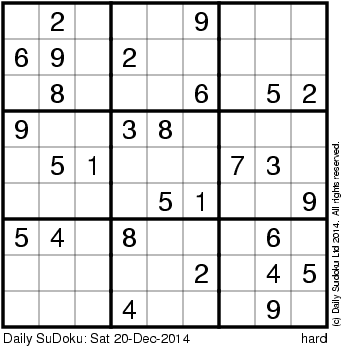 The Daily SuDoku: Sat 20-Dec-2014