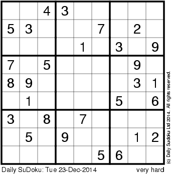 The Daily SuDoku: Tue 23-Dec-2014