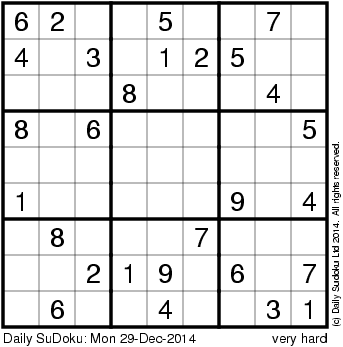 The Daily SuDoku: Mon 29-Dec-2014