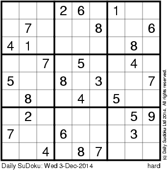 The Daily SuDoku: Wed 3-Dec-2014