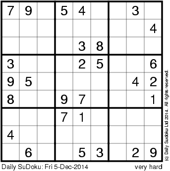The Daily SuDoku: Fri 5-Dec-2014