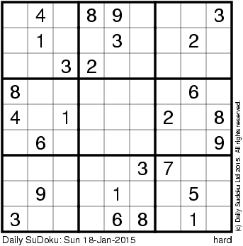 The Daily SuDoku: Sun 18-Jan-2015