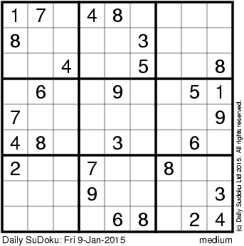 The Daily SuDoku: Fri 9-Jan-2015