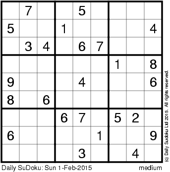 The Daily SuDoku: Sun 1-Feb-2015