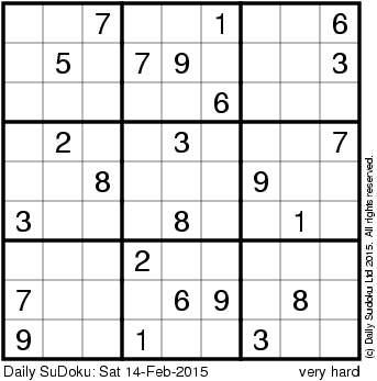 The Daily SuDoku: Sat 14-Feb-2015