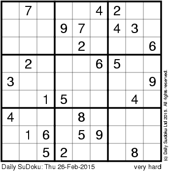 The Daily SuDoku: Thu 26-Feb-2015