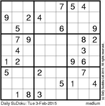 The Daily SuDoku: Tue 3-Feb-2015