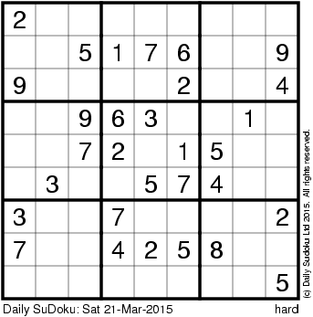 The Daily SuDoku: Sat 21-Mar-2015