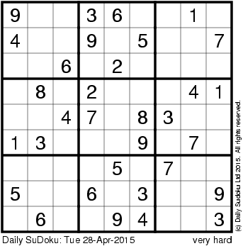 The Daily SuDoku: Tue 28-Apr-2015