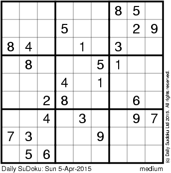 The Daily SuDoku: Sun 5-Apr-2015
