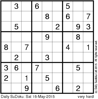 The Daily SuDoku: Sat 16-May-2015