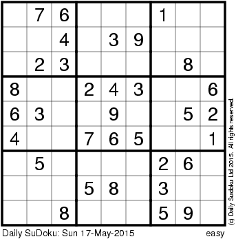 The Daily SuDoku: Sun 17-May-2015
