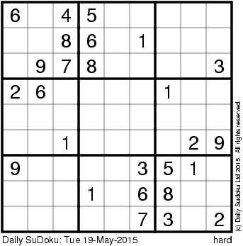 The Daily SuDoku: Tue 19-May-2015