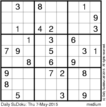 The Daily SuDoku: Thu 7-May-2015