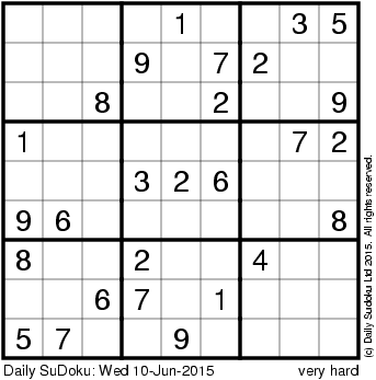 The Daily SuDoku: Wed 10-Jun-2015