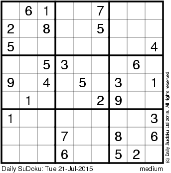 The Daily SuDoku: Tue 21-Jul-2015