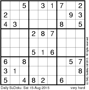 The Daily SuDoku: Sat 15-Aug-2015