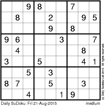The Daily SuDoku: Fri 21-Aug-2015