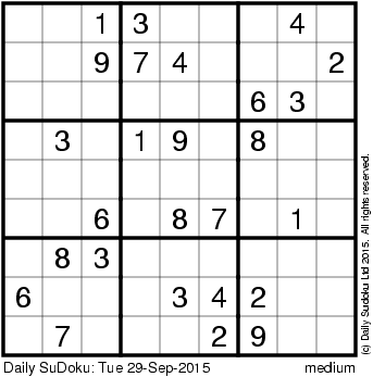 The Daily SuDoku: Tue 29-Sep-2015