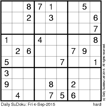 The Daily SuDoku: Fri 4-Sep-2015