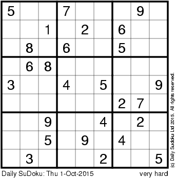 The Daily SuDoku: Thu 1-Oct-2015