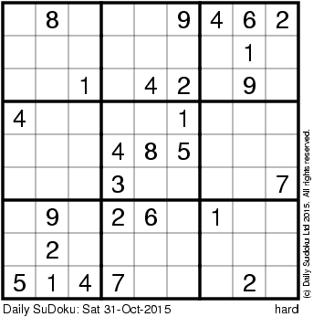 The Daily SuDoku: Sat 31-Oct-2015