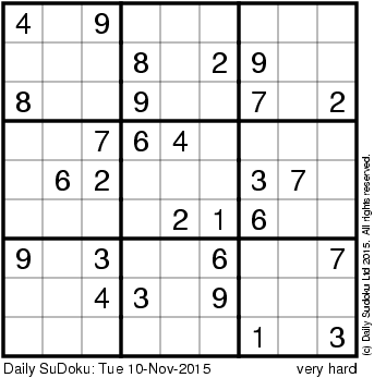 The Daily SuDoku: Tue 10-Nov-2015