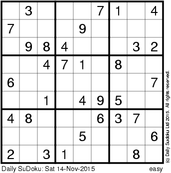 The Daily SuDoku: Sat 14-Nov-2015