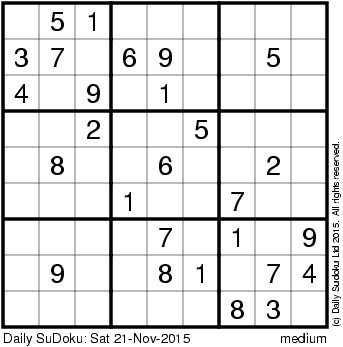 The Daily SuDoku: Sat 21-Nov-2015