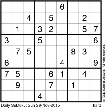The Daily SuDoku: Sun 29-Nov-2015