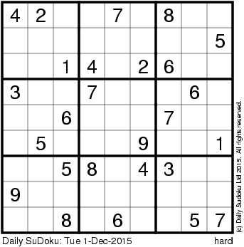 The Daily SuDoku: Tue 1-Dec-2015