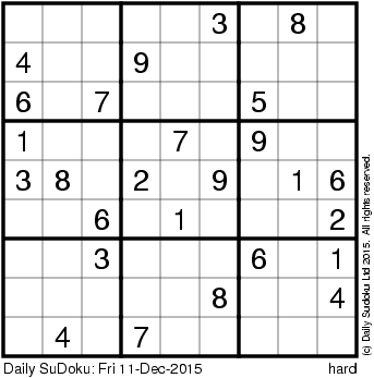 The Daily SuDoku: Fri 11-Dec-2015