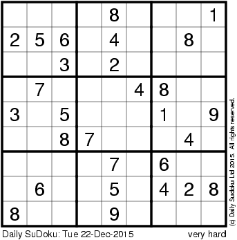 The Daily SuDoku: Tue 22-Dec-2015