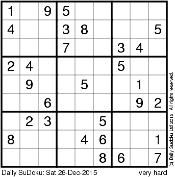The Daily SuDoku: Sat 26-Dec-2015