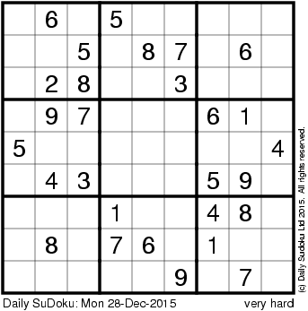 The Daily SuDoku: Mon 28-Dec-2015